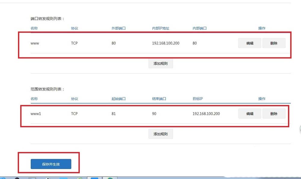 6、看最后添加完事就是這樣子的。點擊“保存并生效” 這個就好使了。