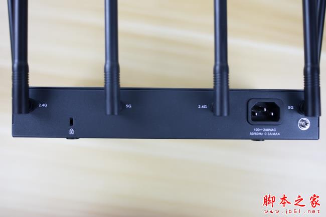 主機的兩側排列著密集的散熱孔,事實上這款路由器由于采用了全金屬外殼打造,所以它不需要通體設計無數的散熱孔,僅僅依靠這兩側的散熱部位即可有效的為內部祛除熱量。經過實際體驗,連續運行3天的情況下,它的外殼也僅僅是有余溫罷了,溫度幾乎可以忽略不計。