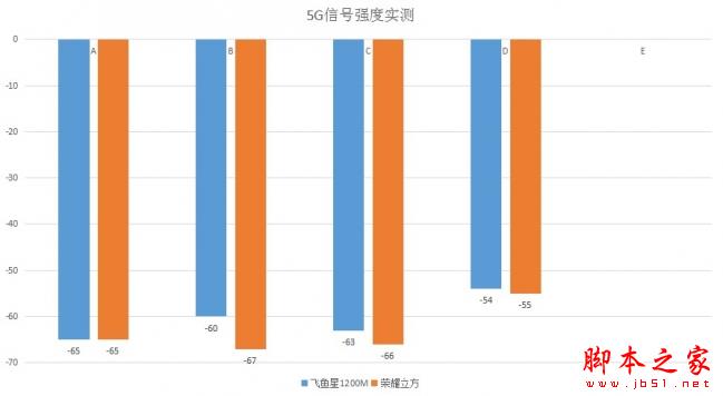 5G信號測試讓我有點意外,因為一般來說5G信號的穿墻能力是非常弱的,而在本次測試中,飛魚星VW1200依舊發揮出了強大的優勢,但較為可惜的是在E點位置,飛魚星VW1200和榮耀立方均為能接收到無線訊號。