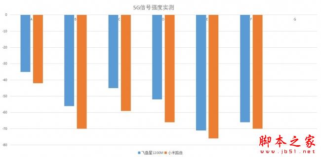 5G頻段測試方面,顯然飛魚星VW1200的信號超越小米路由器太多太多。不過由于5G頻段本身穿墻能力較弱的本質特點,所以導致這兩臺路由器在G點均未接收到無線信號。