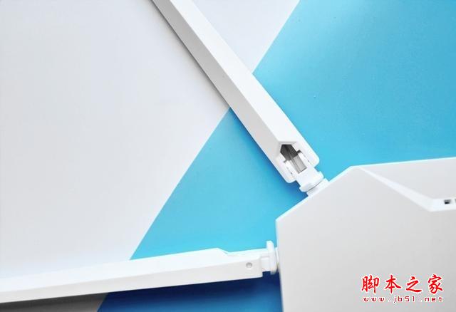 路由配有四根天線,其中兩根是2.4G天線,另外兩根是5G天線。和普通路由有所不同,四根天線并不是有序排列,兩根在兩側,另外兩根則在斜面上,有點像螃蟹腿的感覺。天線可以180度折疊,也可以270度旋轉。