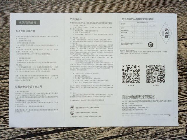 接下來我們來展示一下產(chǎn)品使用說明書,說明書主要向我們介紹了路由器的包裝清單、安裝、連接、設(shè)置、常見問題解答以及相關(guān)制造商信息,讓我們對產(chǎn)品有一個初步的了解。