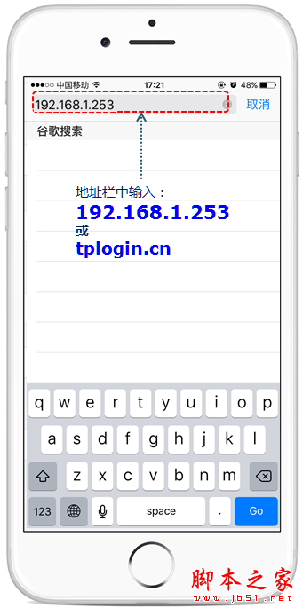 頁面顯示不出來時,請在網頁瀏覽器的地址欄中手動輸入擴展器的管理地址192.168.1.253(或tplogin.cn),尤其是使用蘋果Safari瀏覽器或UC瀏覽器的用戶,使用tplogin.cn無法打開時,請輸入192.168.1.253登錄: