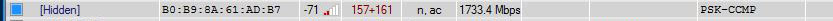 下面這圖就是顯示出隱藏的4×4 1733m的5G。無線SSID名稱就是 “Hidden”,即隱藏了無線。無線信道是157。