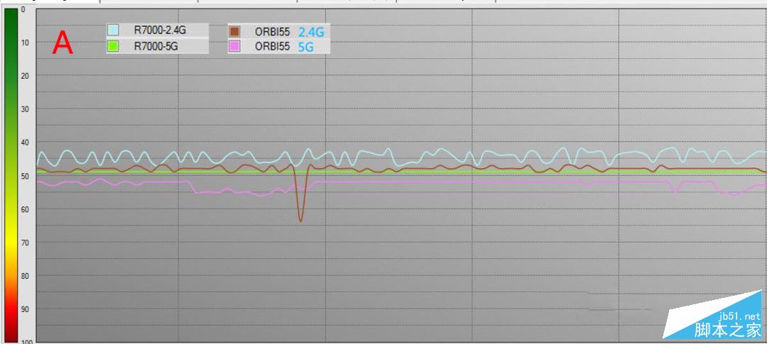 從圖中可以看出,R7000和robi的信號很接近。A和B點位置 R7000的5G比orbi的好一些。