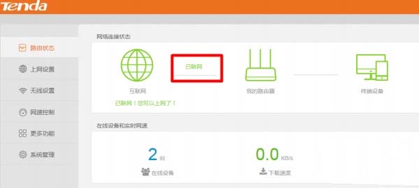 在頁面中查看“網絡連接狀態”選項下面的提示,如果顯示:已聯網 ,說明前面的設置成功,可以上網了,如下圖所示。