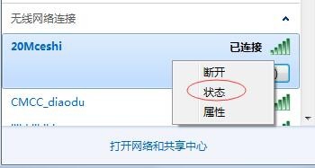 3、連接成功后,點(diǎn)擊右鍵屬性找到,獲取的ip及網(wǎng)關(guān);也可以在cmd下輸入ipconfig查看自己的ip獲取信息,找到網(wǎng)關(guān)項(xiàng);