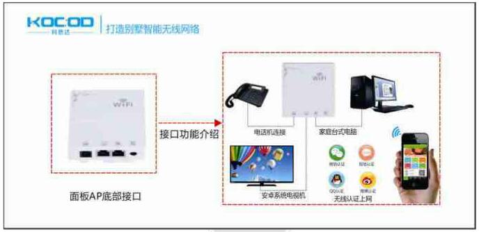 ET953N無縫漫游瘦AP,便于集中管理,配置,升級維護,可使整個無線網絡配置簡單易用,并且降低設備維護成本,是酒店、公寓、別墅等行業無線網絡應用中不可或缺的關鍵設備。ET953N入墻式無線AP,統一由前端AC認證路由器集中管控及配置,所有無線SSID統一名稱,支持中文名稱,支持遠程對局域網內的無線AP管理、用戶管理、流量統計、故障發現等無線AP的實時狀況。所有無線AP在局域網中即插即用,面板式無線AP設備安裝好后無需單獨配置,通電工作后自動尋找AC認證路由器,進行統一配置及控制。
