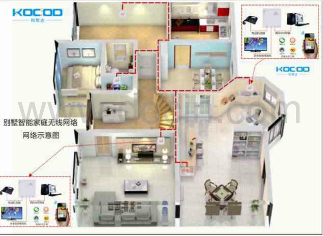 別墅環境開闊,樓層之間對無線衰減較大。接入終端包括移動終端、網絡電視、智能家居以及無線設備,對無線網絡的覆蓋范圍、信號強度、移動性以及便捷管理有較高的要求。家庭應用主要有聊天、游戲、網頁瀏覽、視頻等應用等。