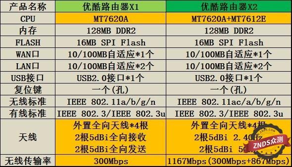 先來看一張圖,X1和X2的差異其實(shí)主要在CPU上,X1是只有2.4GHz,而X2則支持雙頻。雖然兩者都是四根天線,但是類型上卻有差異。CPU的差異某種程度的造成了兩款路由器天線設(shè)計(jì)上的差異,而天線設(shè)計(jì)上的差異有直接影響到了傳輸速率。