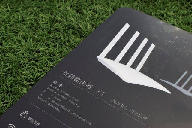 相比于優(yōu)酷路由器X2的紙盒裝,X1 包裝偏向于超市專賣的簡裝。雖然也是用的四根天線的設(shè)計(jì),不過第一印象是個(gè)頭變小了。
