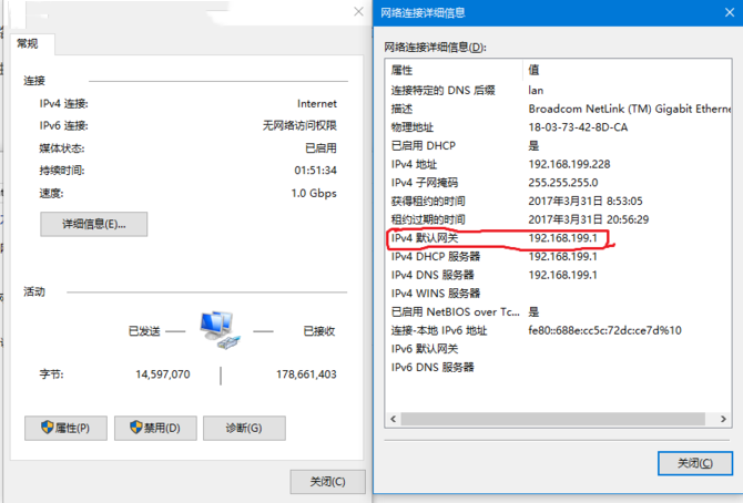 如果這里沒有看到的話,可以點擊桌面右下角的網絡和共享中心,在網絡和共享中心中點擊本地連接,在連接狀態中點擊詳細信息,然后就可以看到路由器的登錄地址了。