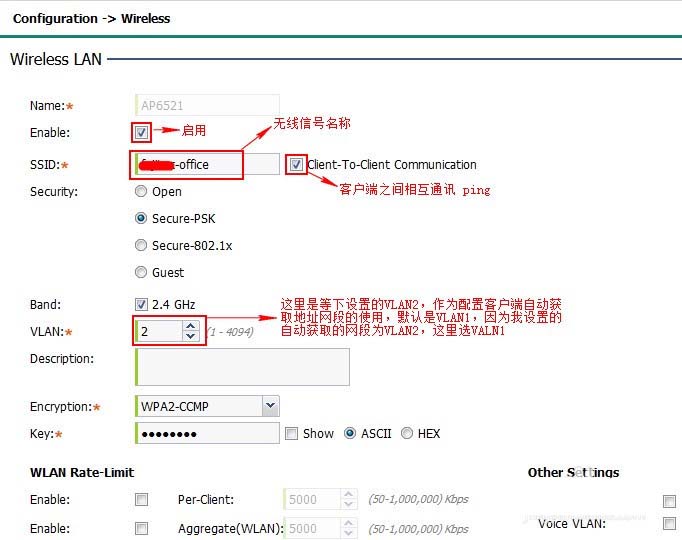VLAN: 配置此WLAN的用戶VLAN,如果使能了WAN,那么建議此處不要配置為VLAN 1;