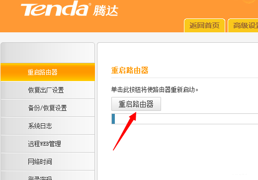 6、最后切換至“系統工具”選項卡,找到“重啟路由器”項,點擊“重啟路由器”按鈕,待路由器重啟完成后,設置生效。