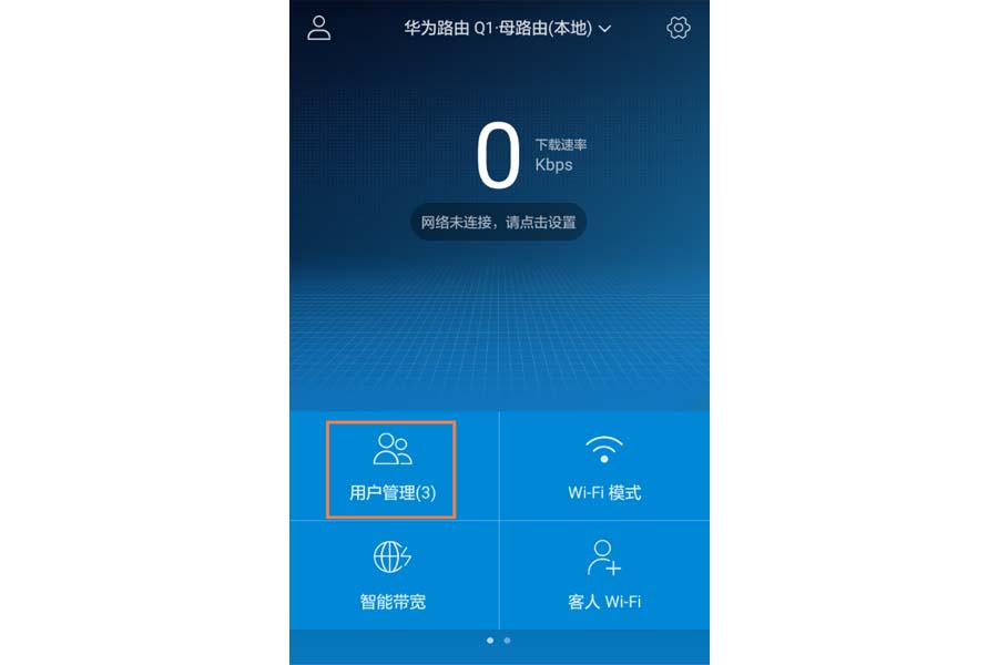 1、手機連接路由器的 Wi-Fi。打開手機中的 華為HiLink APP。點擊“用戶管理”。