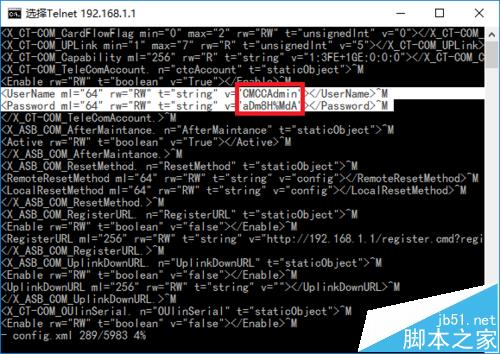 5、按大概12次Page Down鍵,找到第295行。看到紅色框內的東西了嗎?“CMCCAdmin”是超級管理員賬號,下面的是密碼,每臺設備可能不一樣。