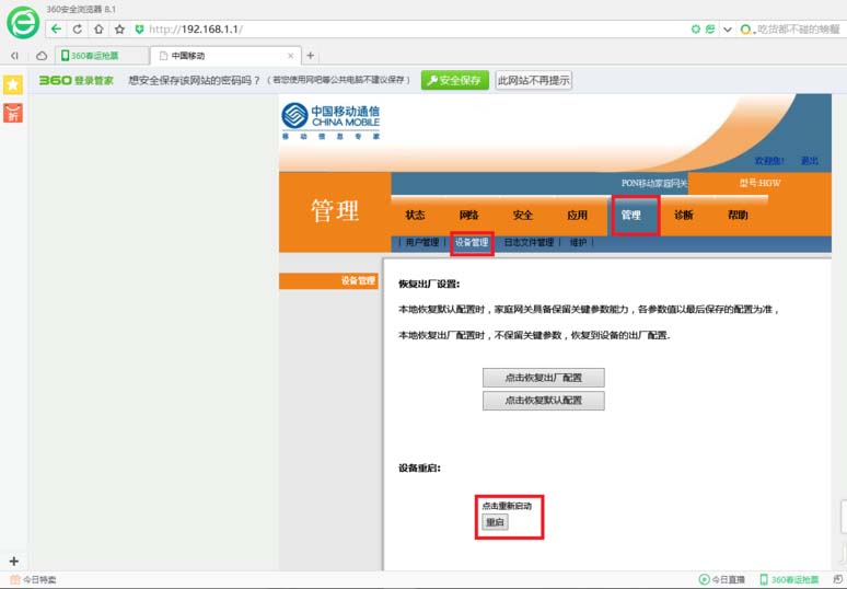10、還有一些一般路由器的功能可以使用,這里不一一闡述。如果是其他帶有Wi-Fi功能的光貓,還可以修改Wi-Fi名稱(SSID)。修改完畢,點擊管理->設備管理->重啟光貓即可。