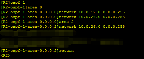 5、配置非骨干區域路由器,在R6上創建OSPF進程,創建并進入區域2,并通告相應網段。在相關路由器R2、R4上創建區域2,并將于R6相連的接口通告。(R2、R4配置在步驟3。)