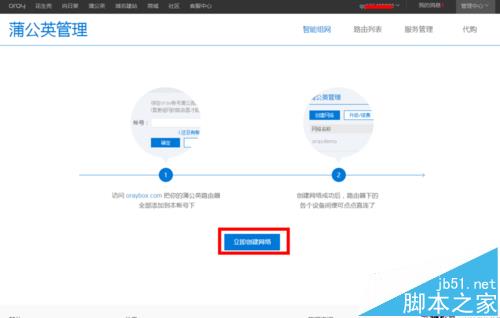 2、進入后臺頁面后,點擊“我要組網”,進入蒲公英管理平臺管理頁面,點擊“立即創建網路”,進入創建網絡界面。