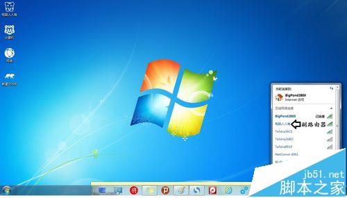 3、此時,打開電腦Windows 7 操作系統,左鍵點擊屏幕右下方任務欄的無線圖標→主路由器和副路由器的訊號都有了。因為主路由器的距離稍遠,副路由器的距離較近,所以從信號強度上看副路由器為滿格。