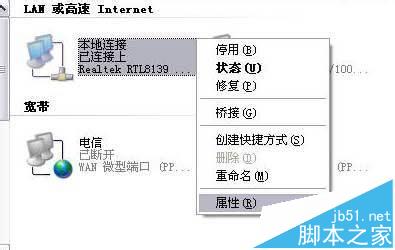 2、“本地連接”——“屬性”(如下圖)