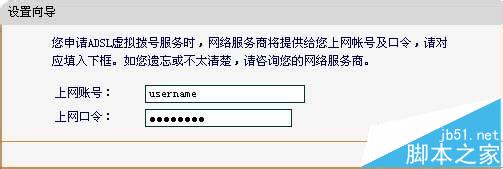 2、在如下圖的界面中輸入ISP提供的寬帶上網的用戶名和密碼。