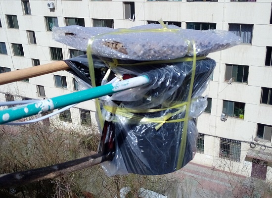 3.防高溫。垃圾桶用多層黑色塑料袋封裝,可以起到隔阻熱輻射的作用,最外層再用白色塑料袋包裹,避免吸能吸熱,最大限度地防止高溫。