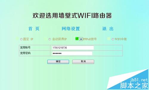 4、如果寬帶連接選擇“PPPoE撥號”,輸入帳號和密碼,然后點擊“確定”