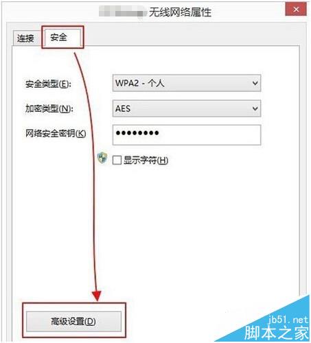 5、待打開“無線連接 屬性”窗口后,切換到“安全”選項(xiàng)卡,點(diǎn)擊“高級(jí)屬性“按鈕進(jìn)入。