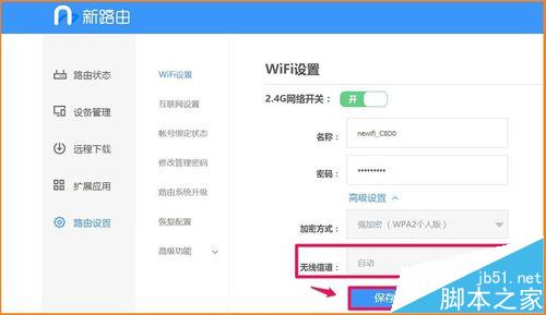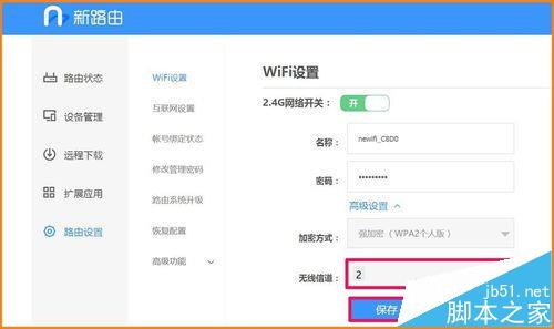 7、我們點擊:路由設置,在右側窗口的【無線信道】如果默認為自動且點擊了保存,則newifi_C8D0的2、3、4、5、6五條信道都可以用來連接;如果我們選擇某一信道如:newifi_C8D0 5且點擊了保存,則只有newifi_C8D0 2信道可以連接。本人選擇的【無線信道】是默認為自動,且點擊了保存;