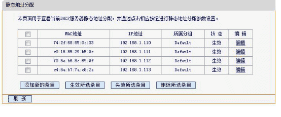 幾乎所有的路由器都有綁定IP和MAC地址的功能,通過路由器的IP和MAC地址綁定功能,可以有效阻止無線路由器接入公司局域網(wǎng),因為只有綁定IP和MAC地址的電腦才可以上網(wǎng)。如下圖所示: