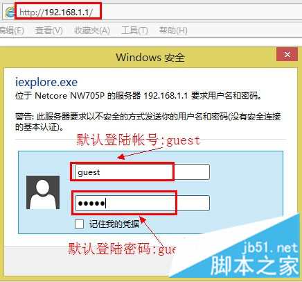 1、登錄磊科路由器管理界面:在瀏覽器中的地址欄輸入:192.168.1.1 按回車鍵——>在跳轉(zhuǎn)的頁面中輸入賬戶guest,密碼 guest(出廠用戶名和密碼默認是guest)——>點擊“確定”.