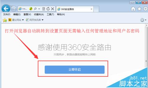 3、如果電腦上沒有安裝360安全衛士,隨意打開一個瀏覽器,這時候會自動跳轉到路由器的設置界面,無需輸入任何管理地址(補充:路由器默認管理地址是luyou.360.cn或者192.168.0.1)