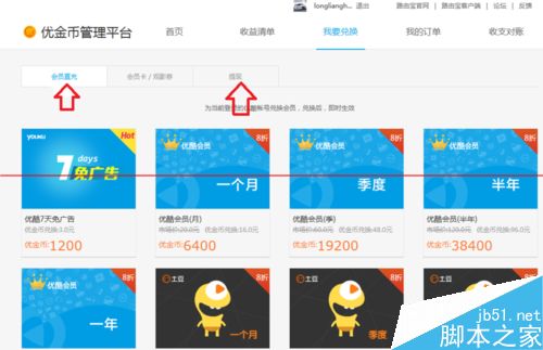 3、賺到的優金幣可以購買會員,也可以用支付寶進行提現。點擊管理優金幣,用自己的優酷賬號登錄,點擊我要兌換,