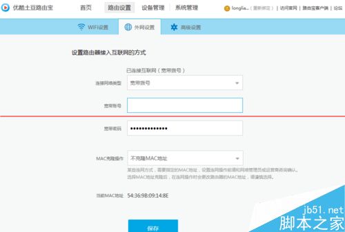 1、路由接上電源插上寬帶,在瀏覽器網址處登錄192.168.11.1進行路由設置,點擊路由設置-外網設置,輸入自己的寬帶賬號跟密碼,點擊保存就OK了。