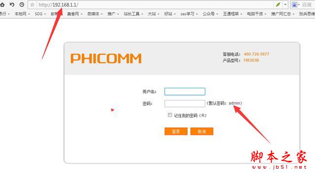 2、打開瀏覽器,在地址欄輸入路由器IP地址(登陸地址),用戶名和密碼一般如果你沒改就是admin(小寫)