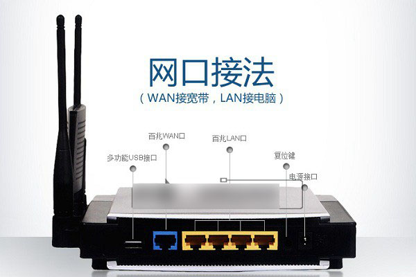 思科路由器通常包含1個WAN口,多個LAN口,復位鍵,電源接口,比較新的思科路由器還會配備USB擴展接口,可以用來接擴展U盤,如圖所示。