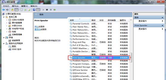 4、然后在里面找到“Print Spooler”這項服務,看它是否已啟動,如果沒有,點“啟動”再把“啟動類型”選為“自動”。如果Print Spooler服務啟動失敗,請檢查Remote Procedure Call (RPC)服務是否正常,如果不正常則進行相關處理,否則有可能是操作系統出了問題。