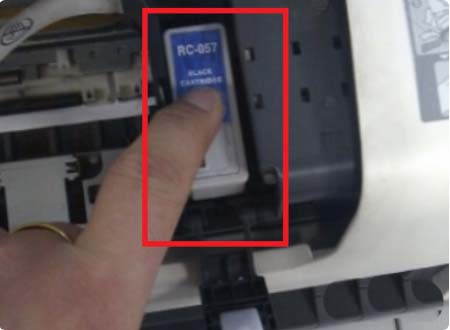 4、其次把惠普打印機的墨盒重新放到插槽里壓緊固定。