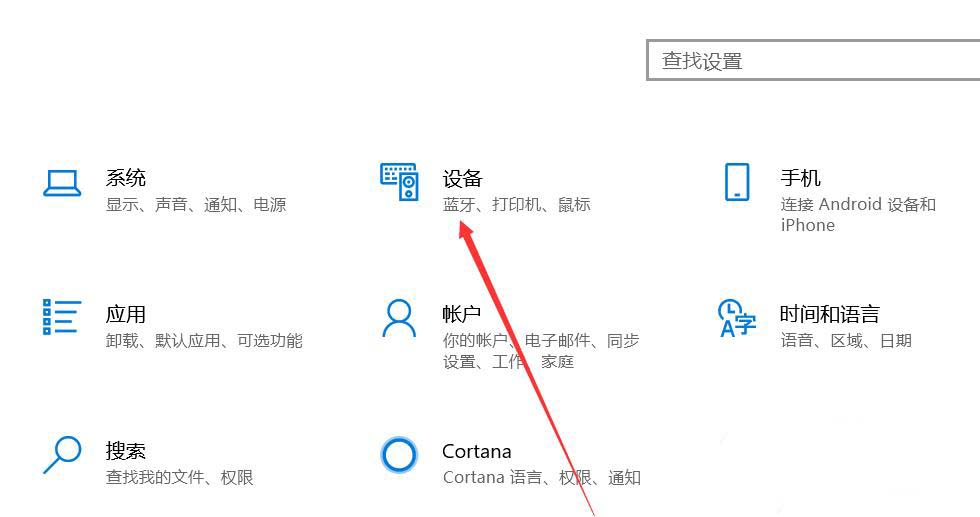 3、在設置界面選擇“設備”選項進入。