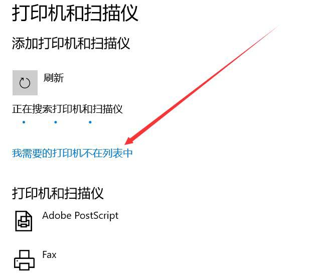 6、如果沒有結果可以點擊“我需要的打印機不在列表中”。