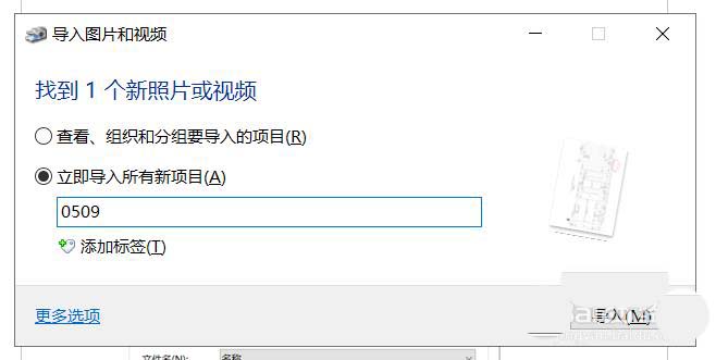 2、彈出的窗口,選擇立即導(dǎo)入所有新項(xiàng)目,點(diǎn)擊更多選項(xiàng),設(shè)置掃描件的保存位置;