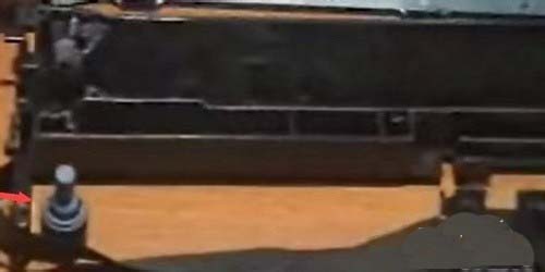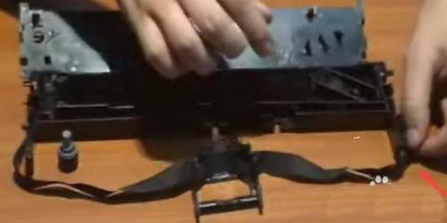 8、然后把先取出的色帶驅動軸放回原來的位置,使新裝的色帶從兩個齒輪中間通過;