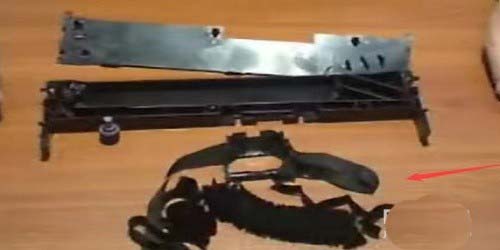 6、這時舊的色帶就裸露出來了,只需要用手輕輕取出就可以了;