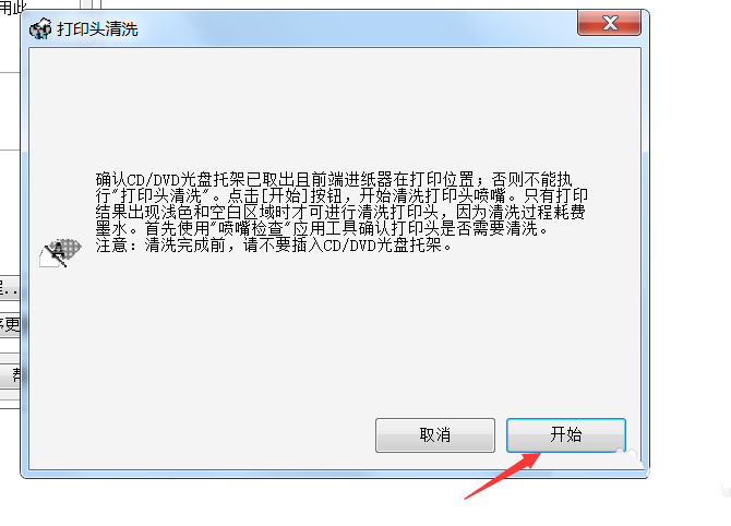 3、進入維護界面,點擊打印頭清洗—開始,等待清洗。