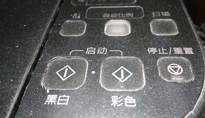 6、另外,在操作面板的最下方,標著黑白或彩色的按鍵,就是用來進行黑白或彩色復印時選擇的,如中途要停止時,就按下旁邊那個停止鍵。如要關閉打印機的話,還是需要再按下電源鍵的,停止打印并不能把打印機關機。