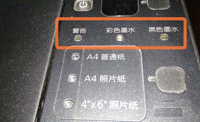 5、在電源鍵下方就是打印機的墨水提示燈,當燈變成橙色,并一直閃爍時,那就說明該墨盒里的墨水不足了。