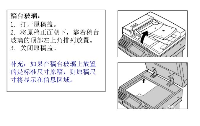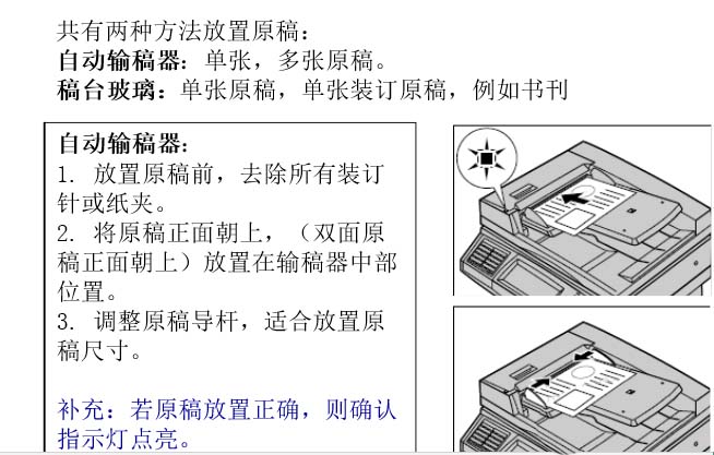 如何正確進行放置原稿進行復印、傳真或者掃描:共有兩種方法,
