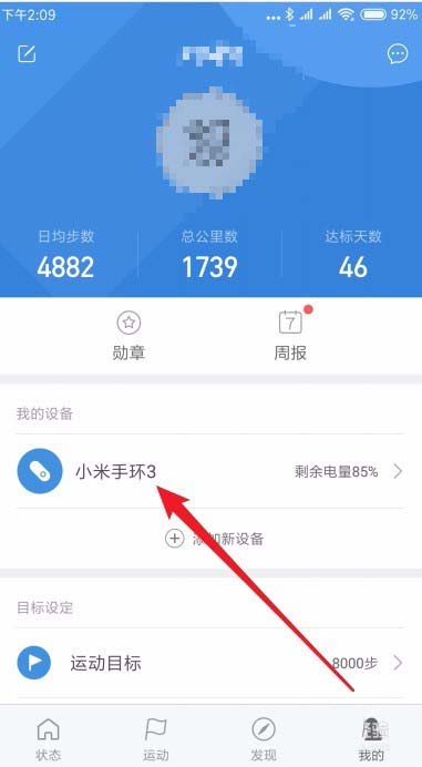 3、在打開的我的管理頁面中,我們點擊“我的設備”中的“小米手環3”的快捷鏈接。