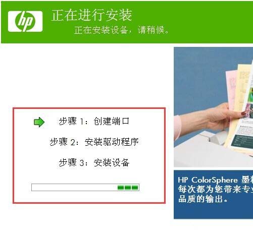 5、進入安裝程序后,自動完成步驟1-3的安裝。安裝完成后,在控制面板的打印機和傳真中查看。